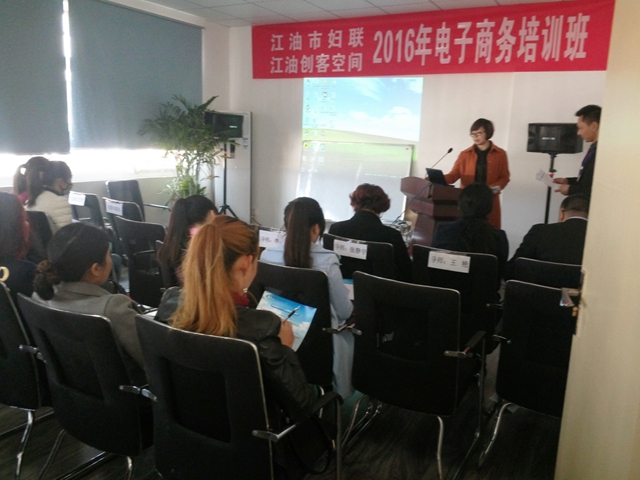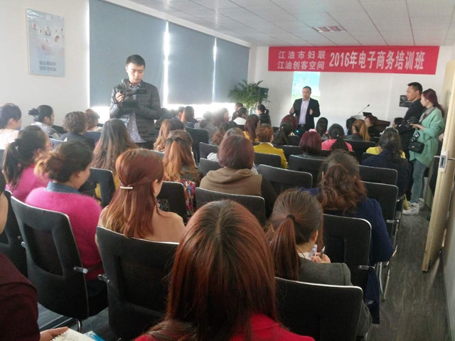 2016年3月18日,江油市創(chuàng)客空間迎來了江油市各鄉(xiāng)鎮(zhèn)的女性電子商務(wù)創(chuàng)業(yè)者100多名,參加培訓(xùn)班的還有江油市婦聯(lián)歐主席、劉部長(zhǎng),中國(guó)網(wǎng)庫(kù)副總裁李琦、中國(guó)網(wǎng)庫(kù)導(dǎo)師王艷、導(dǎo)師張靜宇,創(chuàng)客空間經(jīng)理鮮曉波,以及一些創(chuàng)客空間入孵企業(yè)代表,培訓(xùn)會(huì)由創(chuàng)客空間經(jīng)理鮮曉波主持。