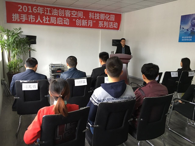 2016年4月8日,江油市創(chuàng)客空間和科技孵化園攜手市人力資源和社會保障局舉辦“創(chuàng)新月”政策培訓會,參加培訓會的有市人社局人才中心主任蒲益、副主任郭建華、股長蔣紹富、股長劉光勇以及創(chuàng)客空間和科技孵化園的入孵企業(yè),培訓會由創(chuàng)客空間經(jīng)理鮮曉波主持。