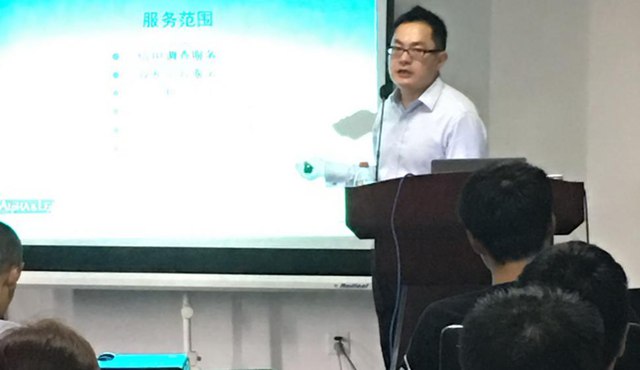 圖一:創(chuàng)客空間負責(zé)人鮮曉波介紹本次研討會