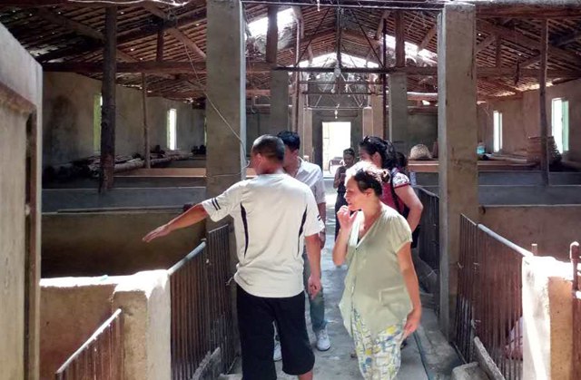 圖一,鮮經(jīng)理一行參觀養(yǎng)豬場